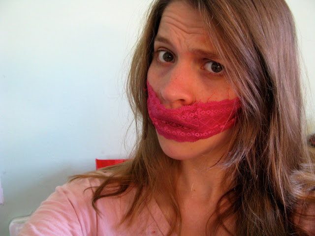 The for-better part includes DIY projects with old throw-aways, like this headband I made from a the lace top of some old Vic Sec panties: