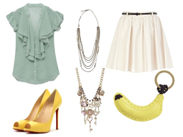 A-line skirts will add curvy volume, but if you’re happier in pants, try a bright pair of skinny jeans and a top in a contrasting color. The two tones will separate your upper half from your lower half and help define your waist. Belting a high-waisted skirt or pant will look great on the shorter banana shape, while taller bananas can pull off hip-hugger styles with a wider, low-slung belt.